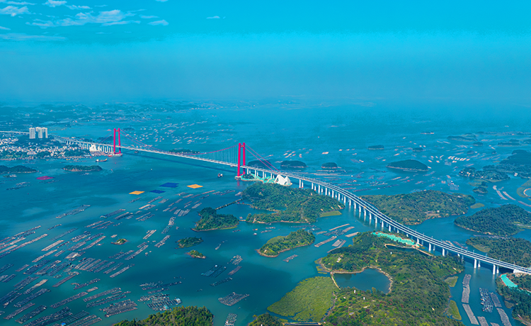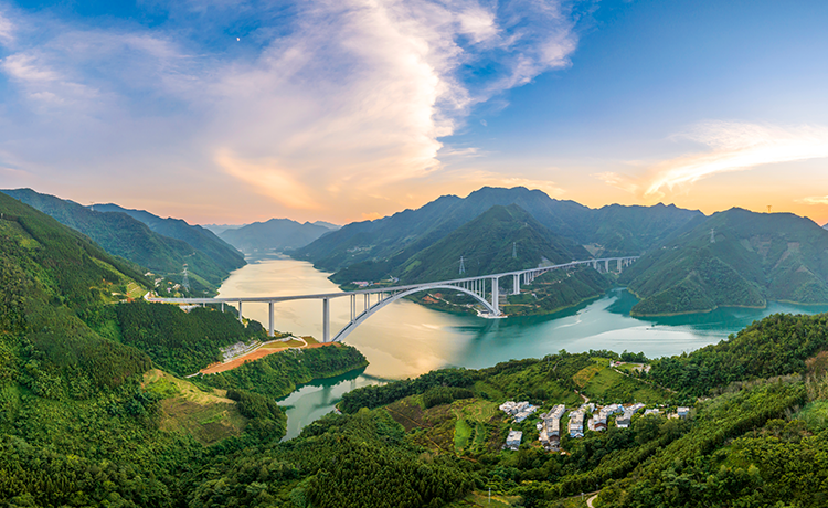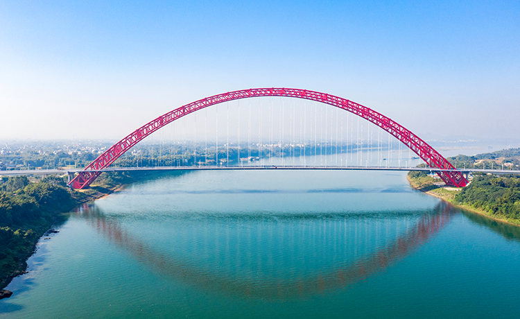 天峨龍灘特大橋由廣西交通投資集團投資建設、中國工程院院士鄭皆連及其團隊和廣西大學提供技術支持,是拱橋技術發展的前沿工程。項目是南丹至天峨下老高速公路的控制性工程,位于廣西河池市天峨縣龍灘電站大壩上游6公里處,橫跨紅水河,全長2488.55米,主橋為計算跨徑600米的上承式勁性骨架混凝土拱橋,雙向四車道,設計行車速度100公里/小時,2020年12月大橋主體工程全面開工建設,于2024年2月1日建成通車。項目建成通車標志著南天高速全線貫通,南丹縣至天峨縣下老鄉行車時間將由原來的3.5小時縮短至1.5小時左右。其建設推動了大跨度拱橋設計、施工工藝的跨越式發展,為高速公路、高鐵跨越山區、峽谷等區域提供技術支撐和鮮活案例,對于“一帶一路”以及西部陸海新通道沿線橋梁工程建設具有示范引領作用。